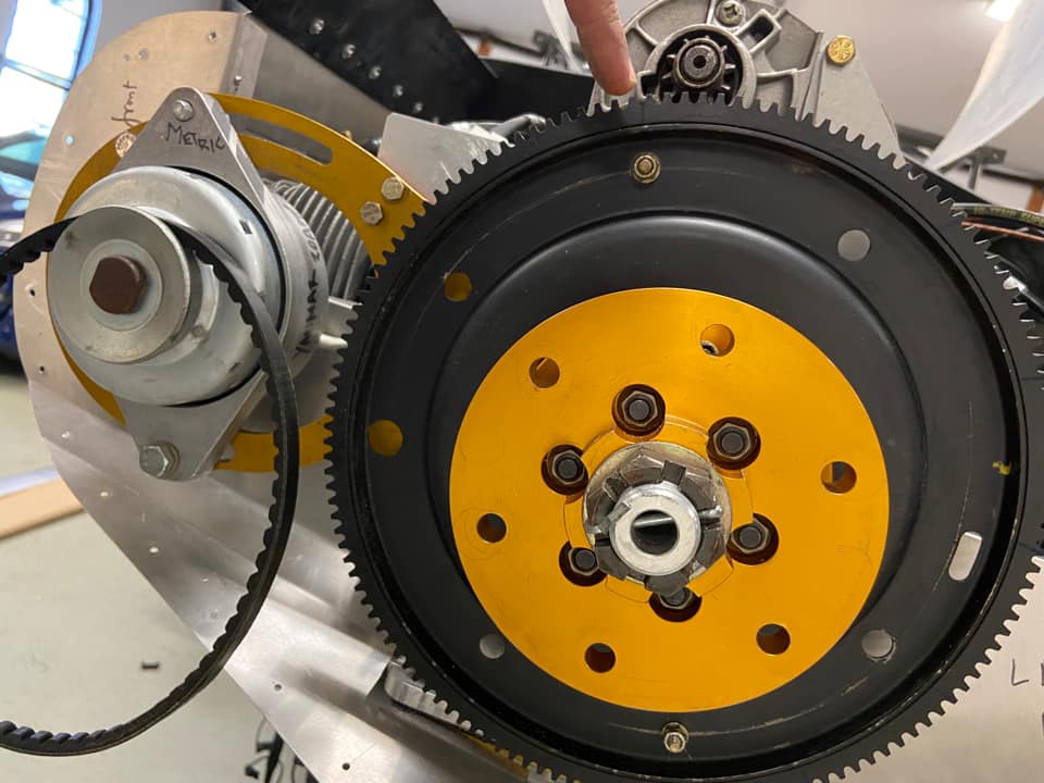 The Tach sensor is from William and it is set to sense the 2 AN3 bolts drilled into Toothed Flywheel 180 deg apart.